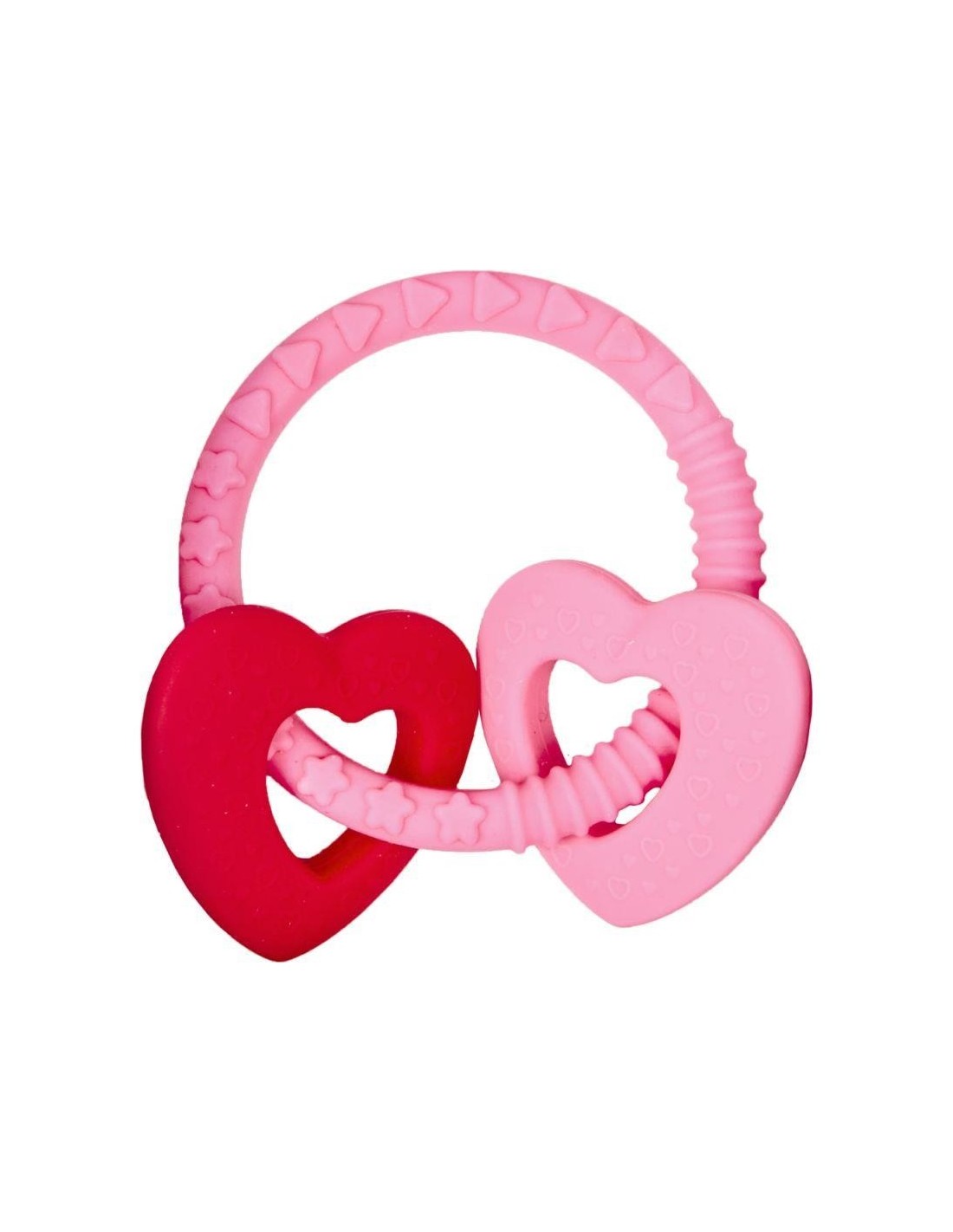 Absolutely ideal for the teething baby. Supports first grabbing attempts playfully. The teething ring is easy to clean. Made of silicone.