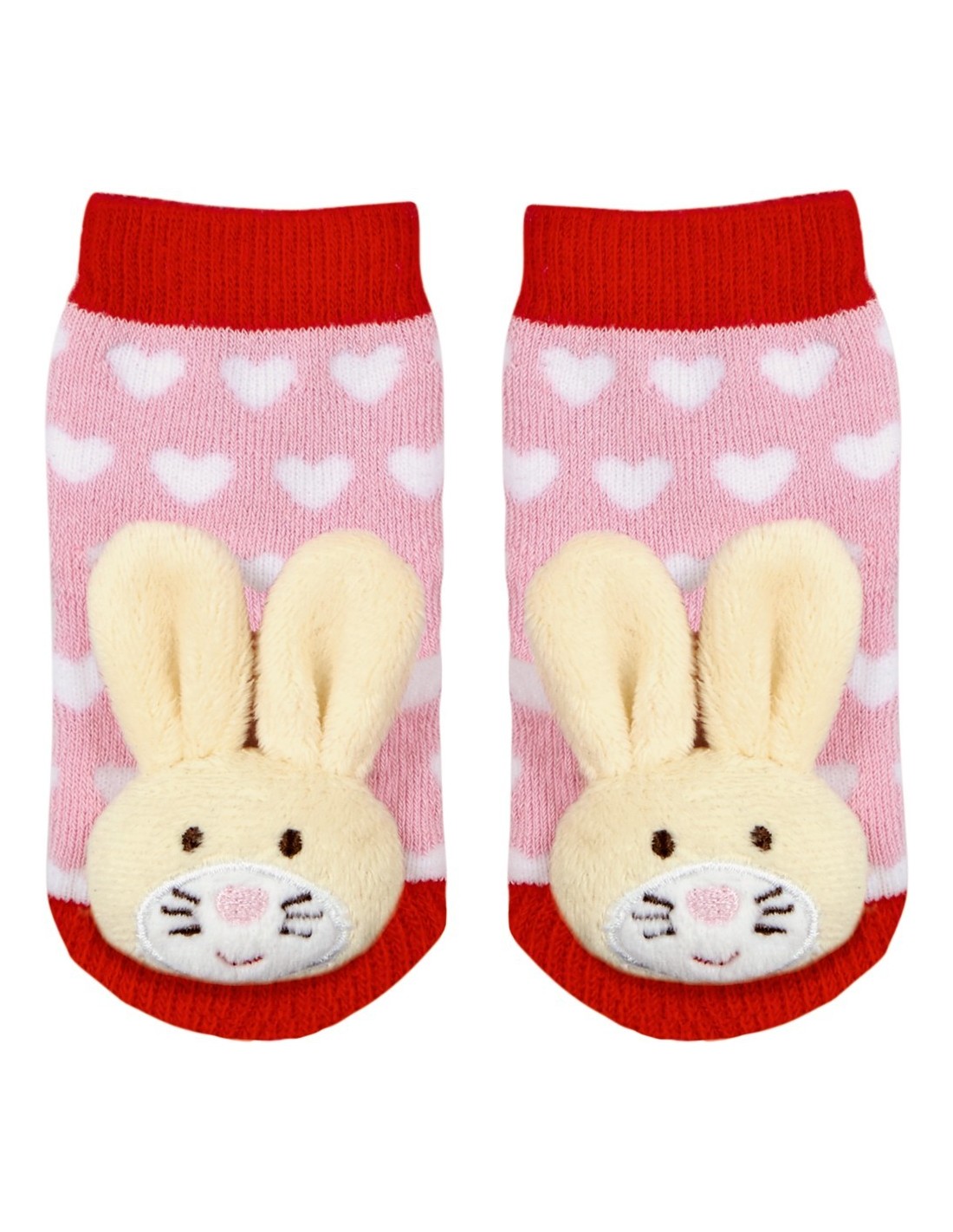 "Where are your feet?" With these socks discovering your feet is even more fun. With appliqué, embroidery and rattle.