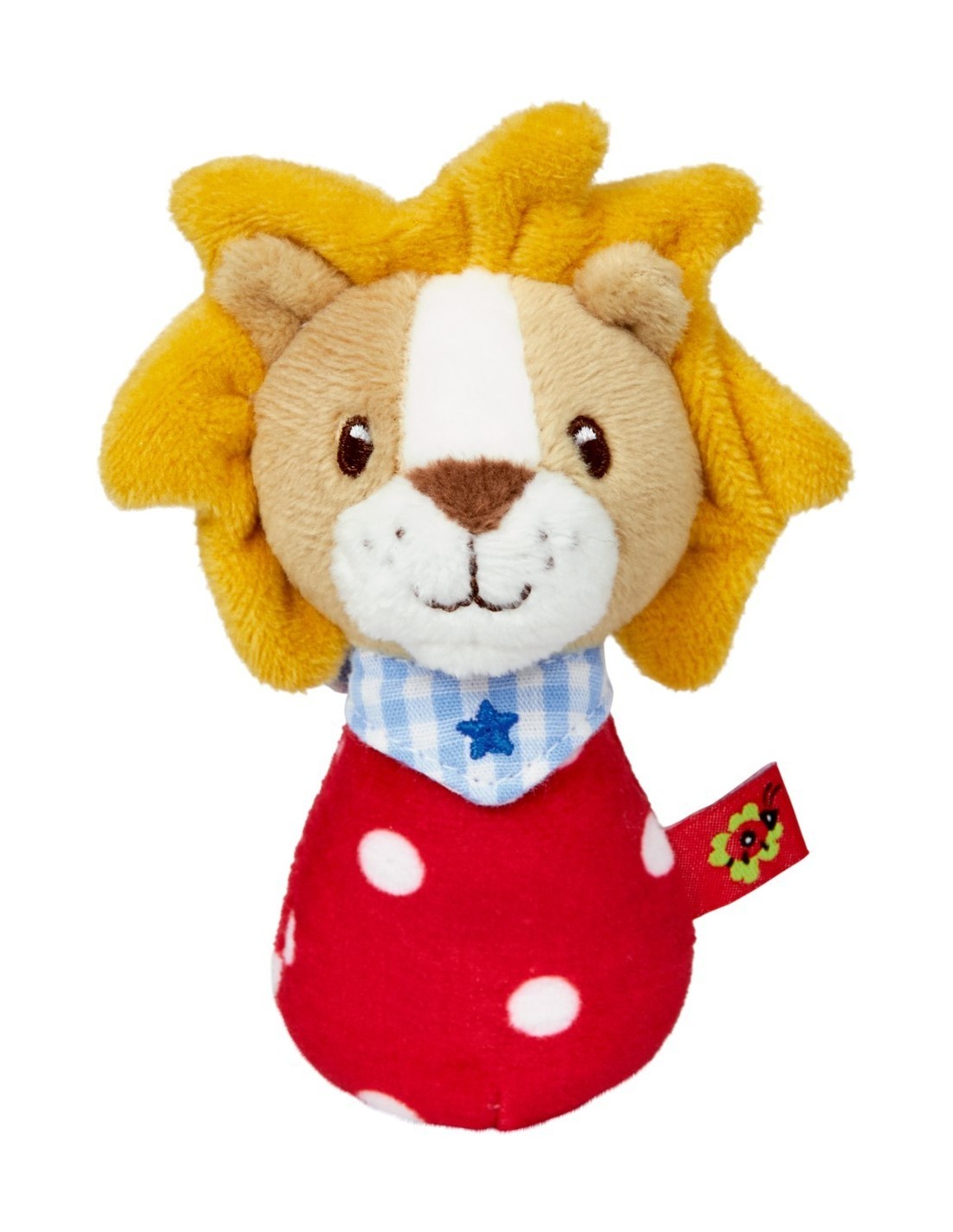 ToysDe levendige leeuwenrammelaar van pluche en zachte stof van Die Spiegelburg zal de kleintjes vrolijk aan het lachen maken. Perfect voor kleine handen om vast te pakken. Een geweldig cadeau voor de geboorte. Met borduursels en mooie details.