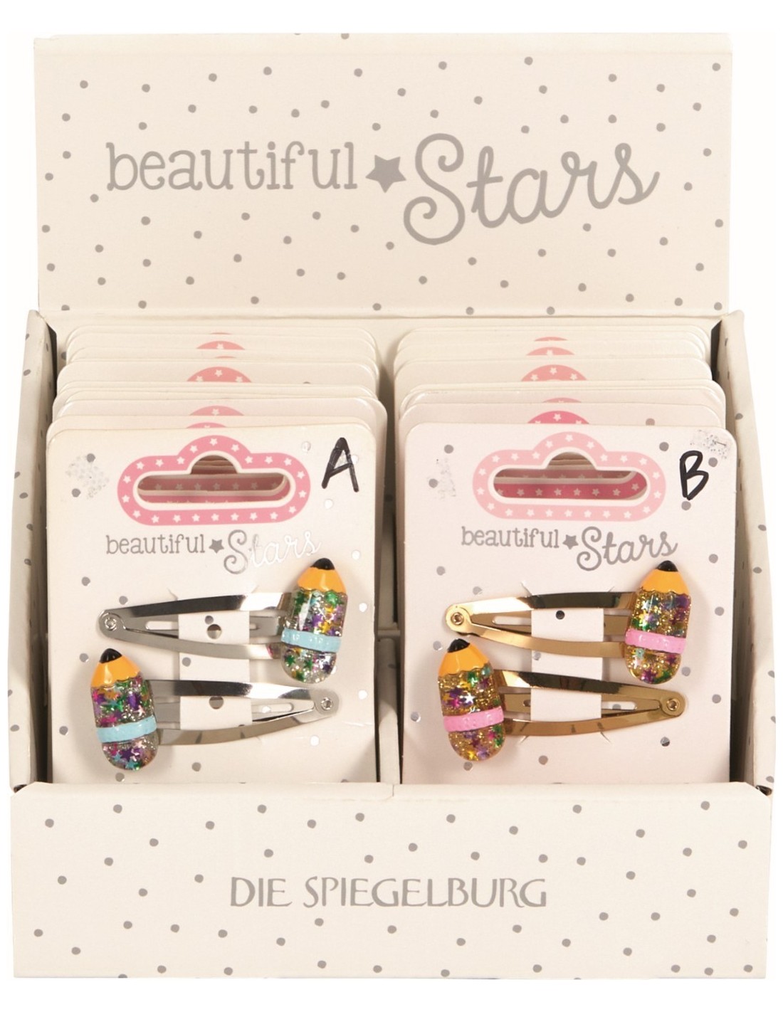 2 designs / set of 2 hair clips and 2 hair ties / with glitter