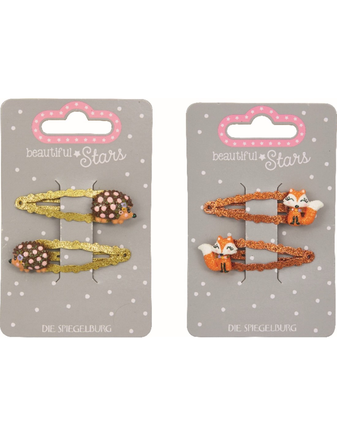 2 designs / set of 2 hair clips / with glitter