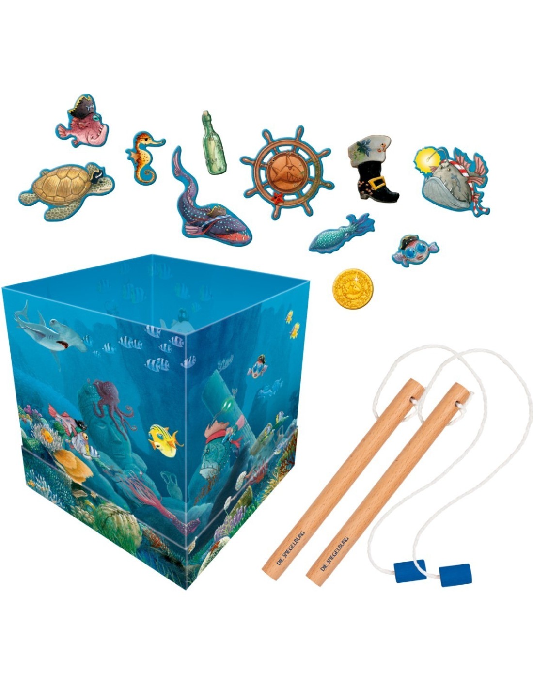 Hinge and fishes made of wood, plastic and metal / fish tank made of cardboard