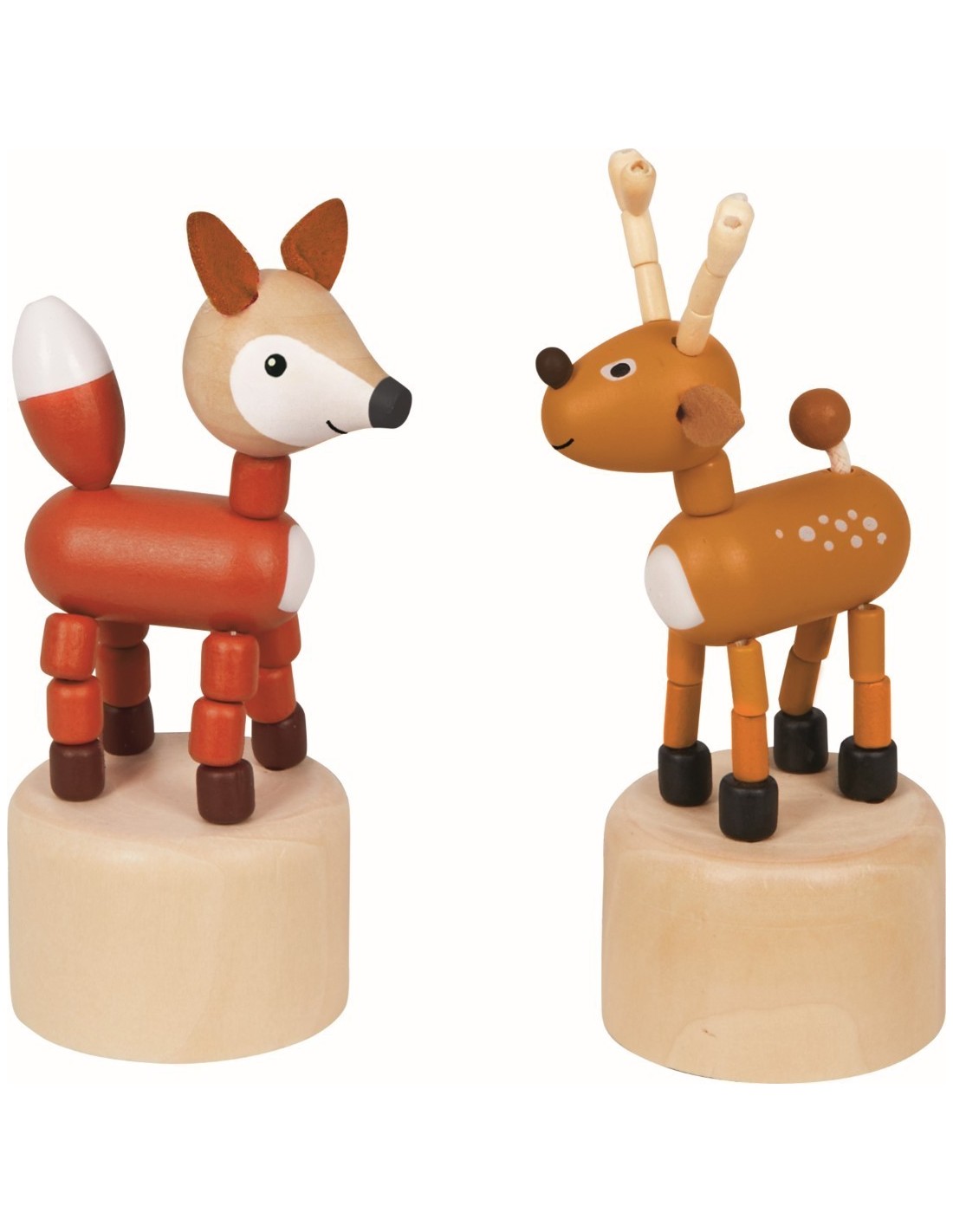 2 designs/ press the bottom and the deer and fox will happily wriggle around