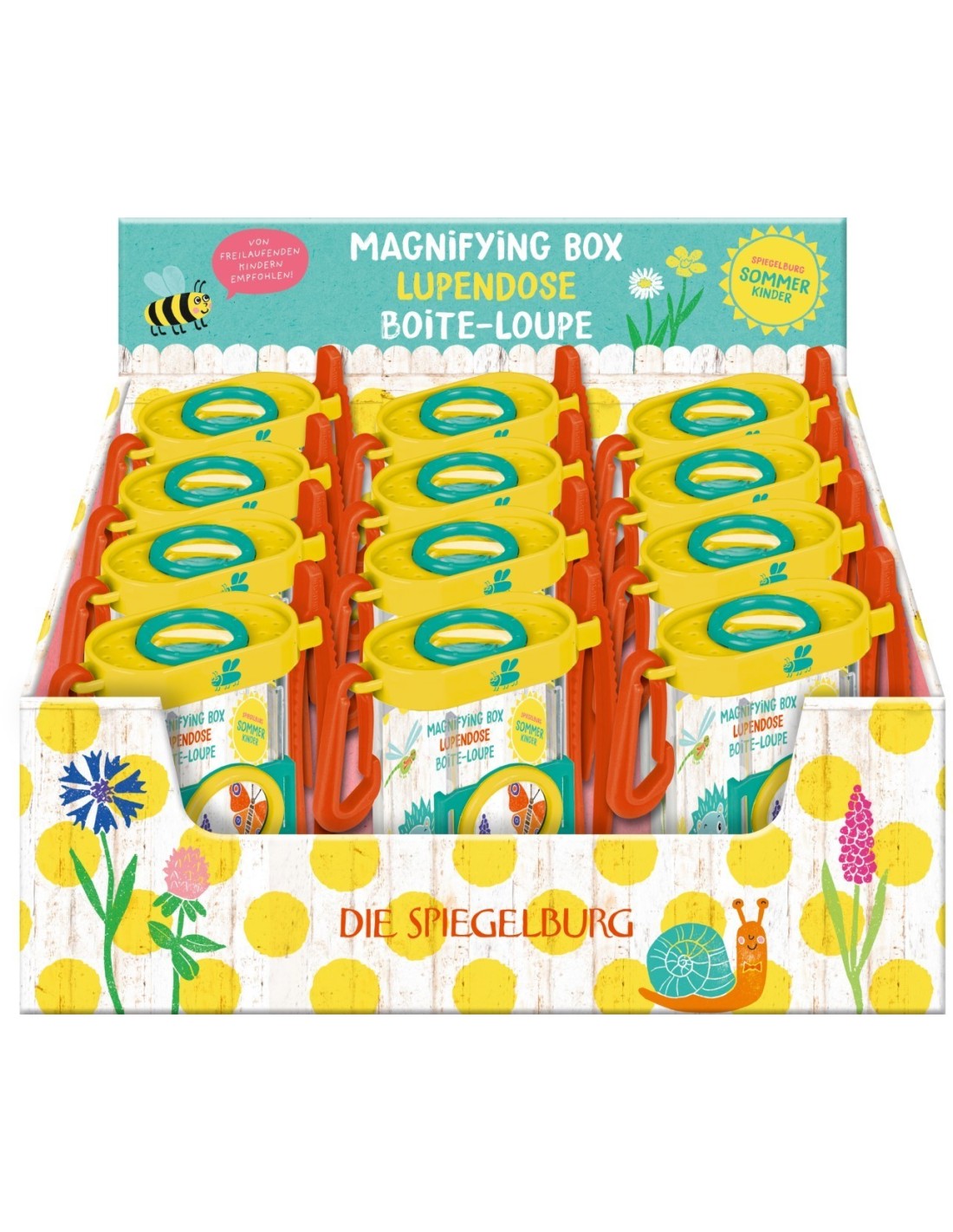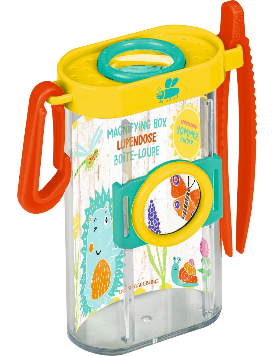 Buiten spelenZomer, zon, plezier! Met dit vergrootglas kunnen kleine verzamelaars op ontdekkingstocht gaan! Zo kunnen kruipende insecten van dichtbij worden waargenomen. De kunststof box kan eenvoudig aan de riem worden bevestigd. Met karabijnhaken, pincet en twee vergrootglazen met verschillende sterktes.