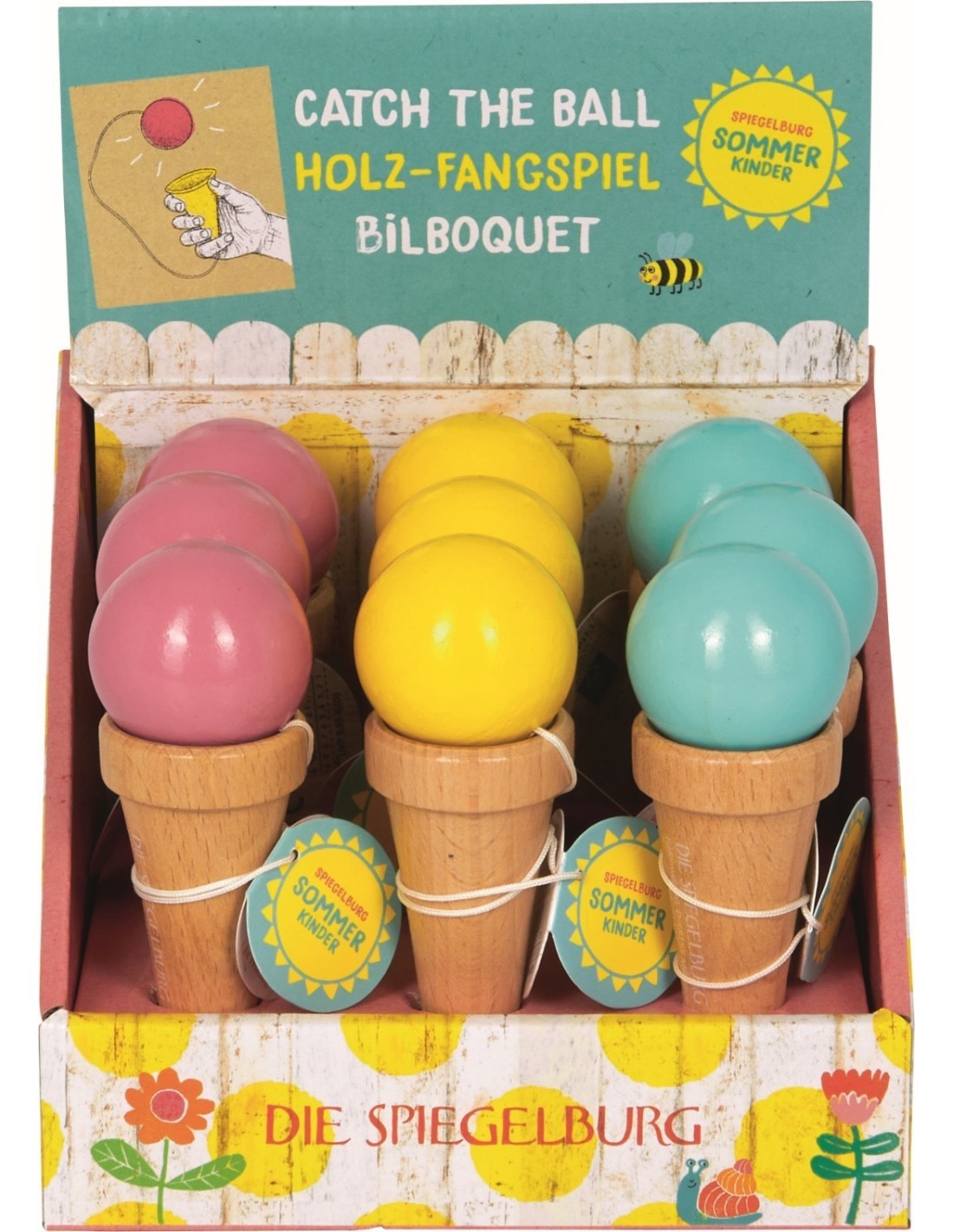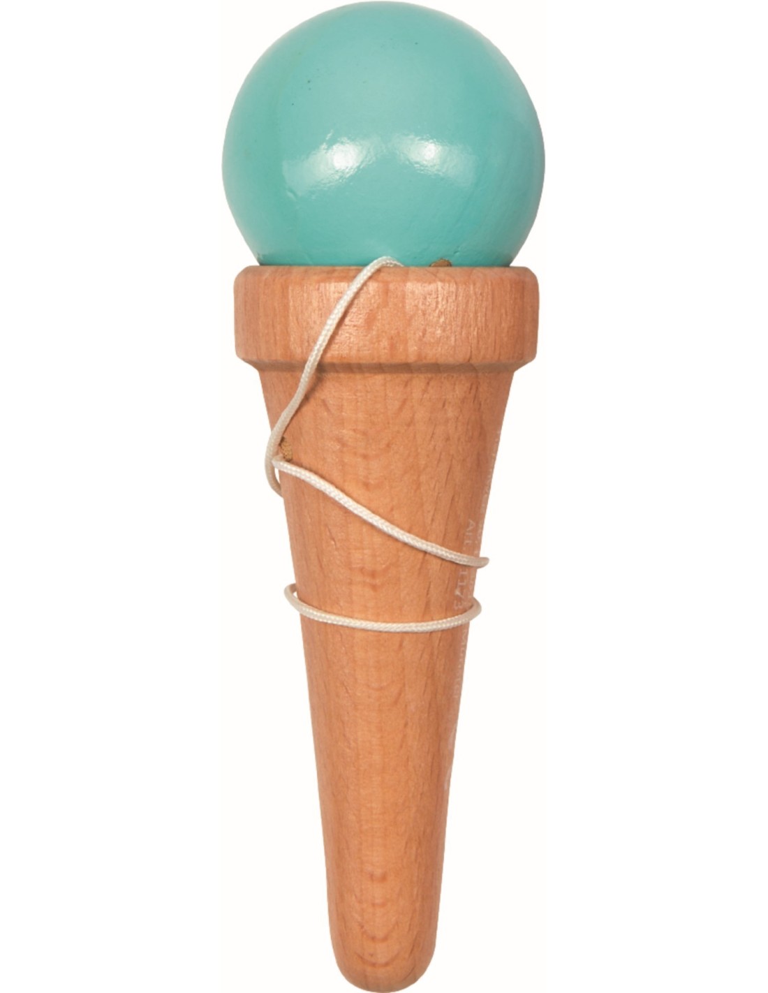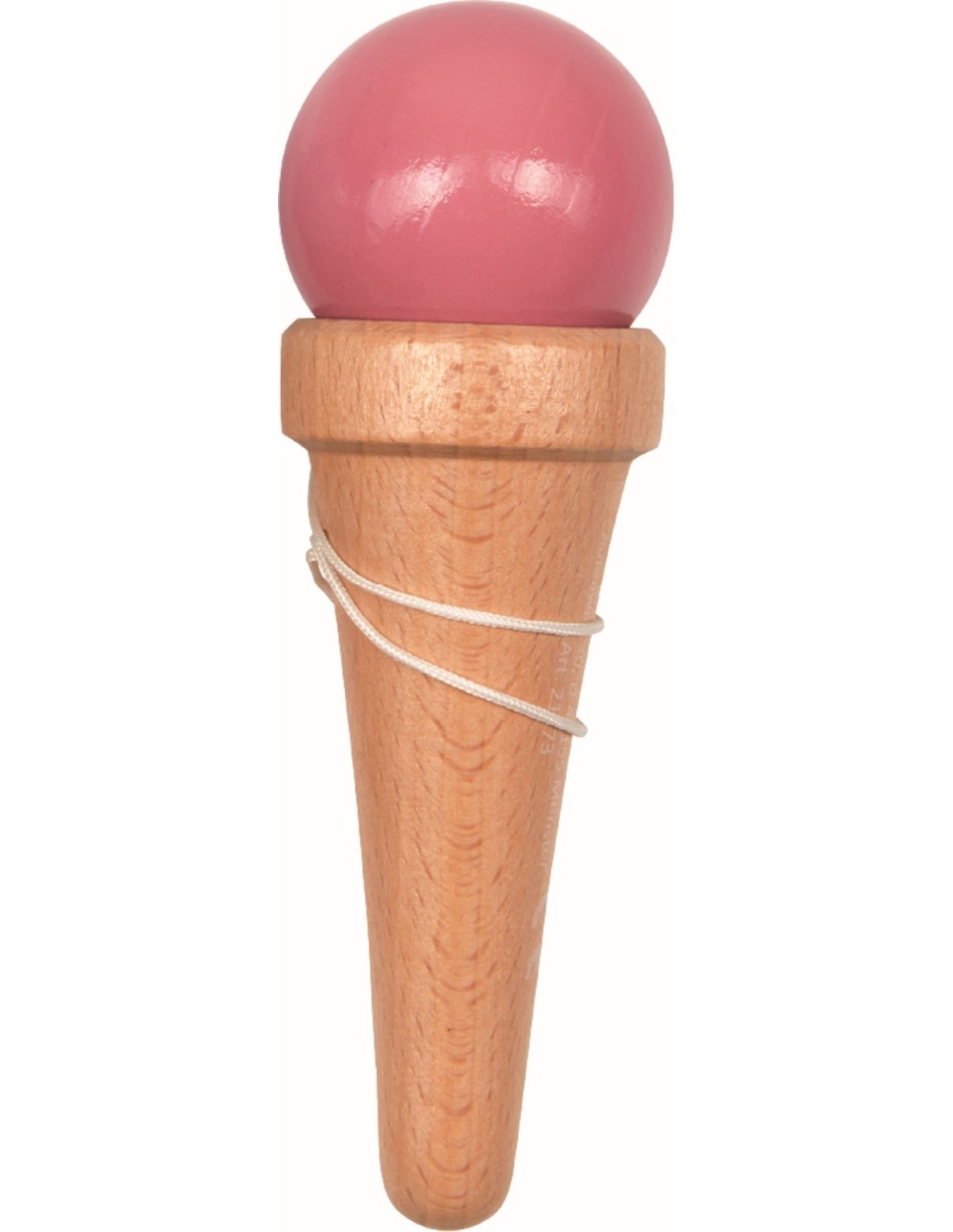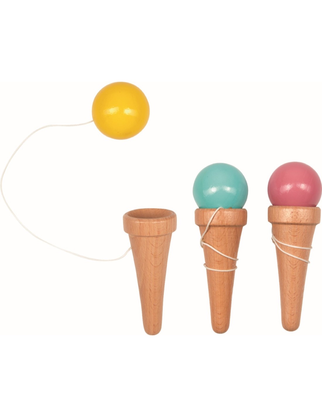 Met dit houten vangspel in de vorm van een kleurrijk ijshoorntje verveel jij je gegarandeerd nooit.