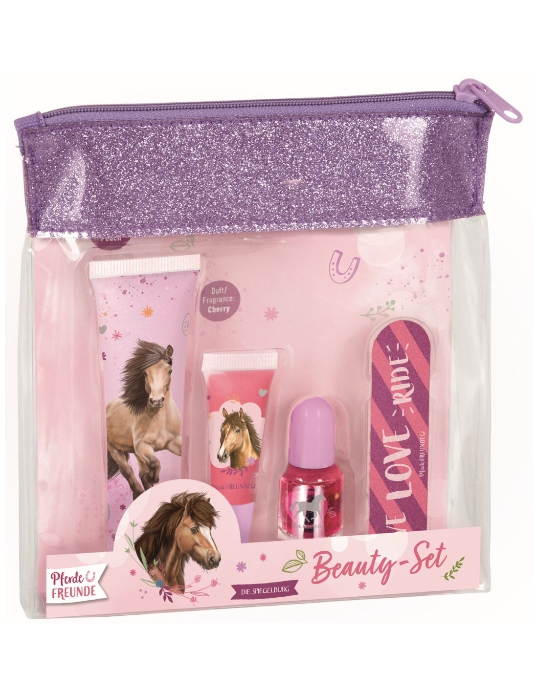 set consisting of a hand cream, a nail polish, a lip gloss and a nail file