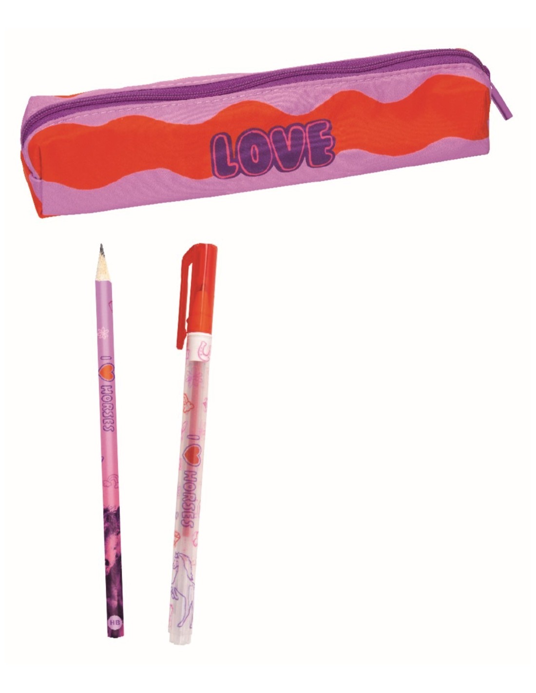set consisting of pencil case, gel pen with 1.0 mm line width and pencil with HB lead
