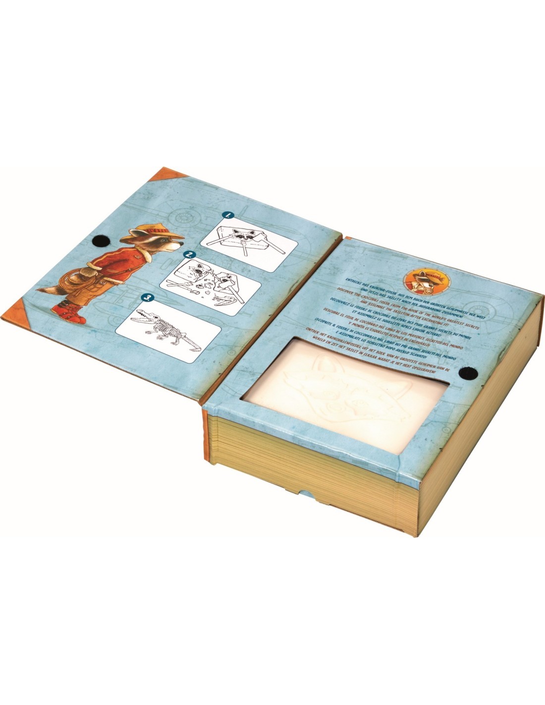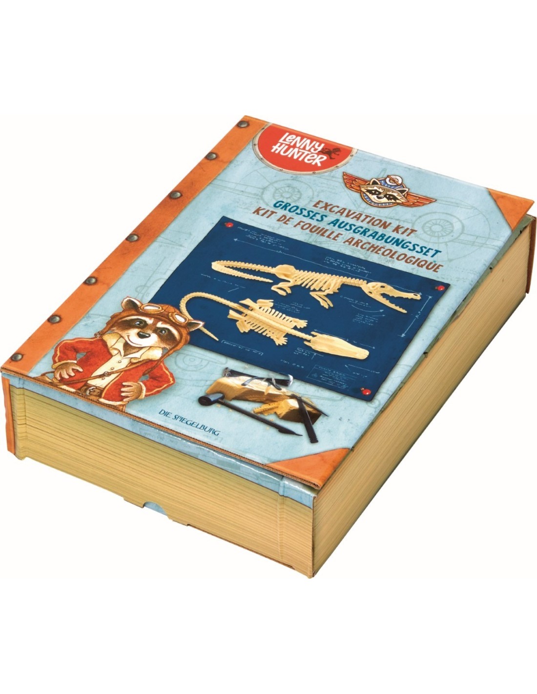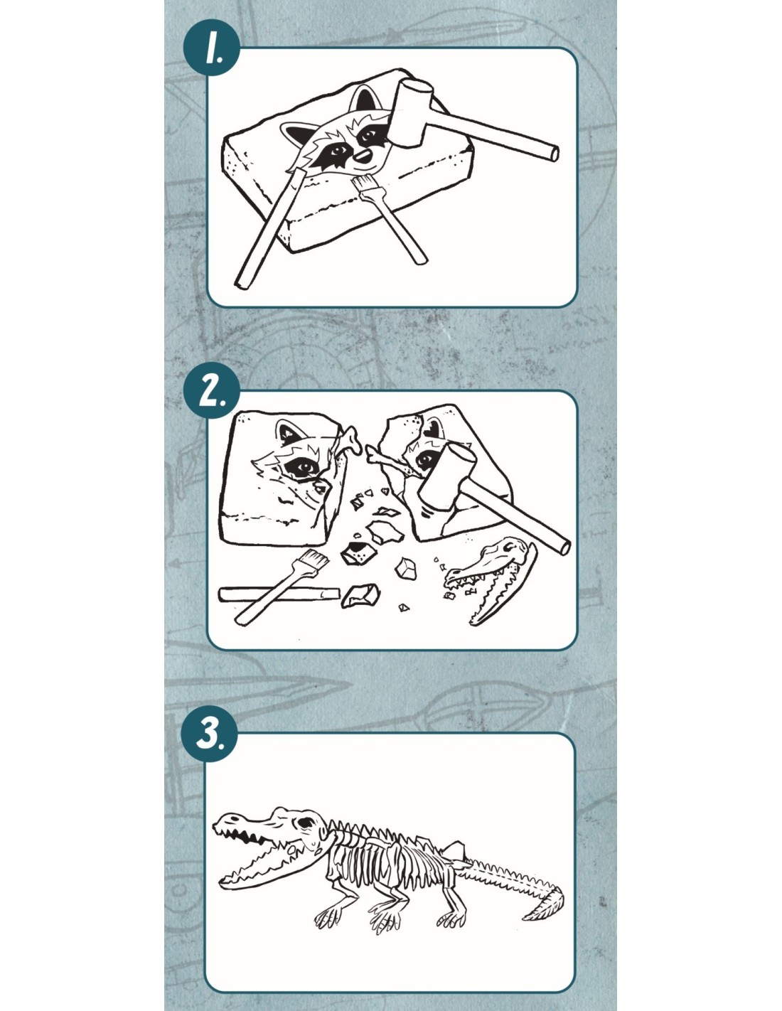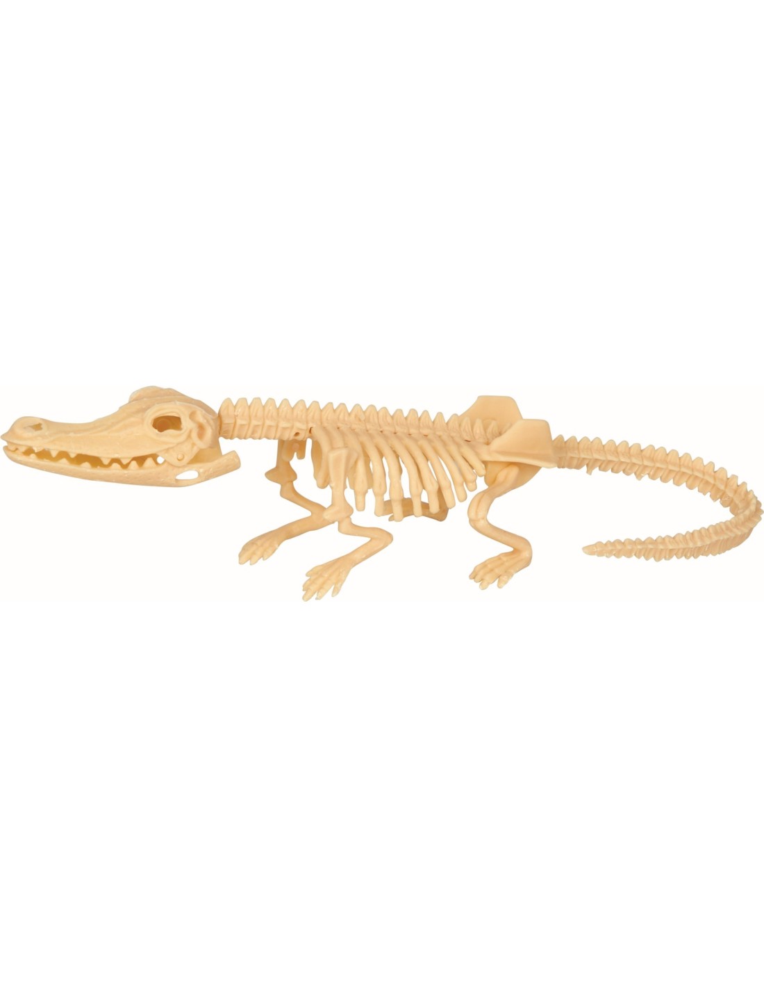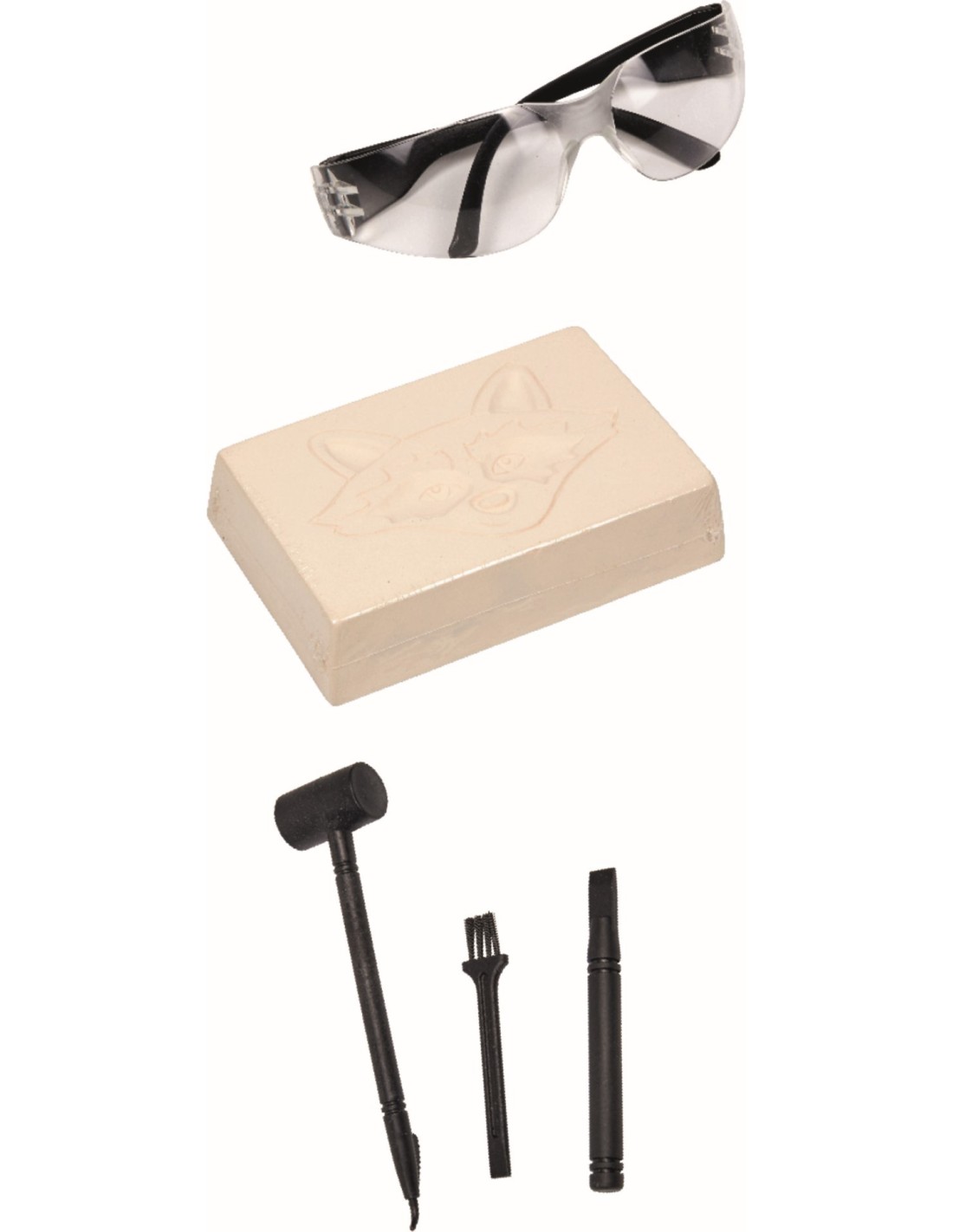 with explorer goggles, hammer, chisel, brush, 11-piece crocodile skeleton in chalk block and instructions