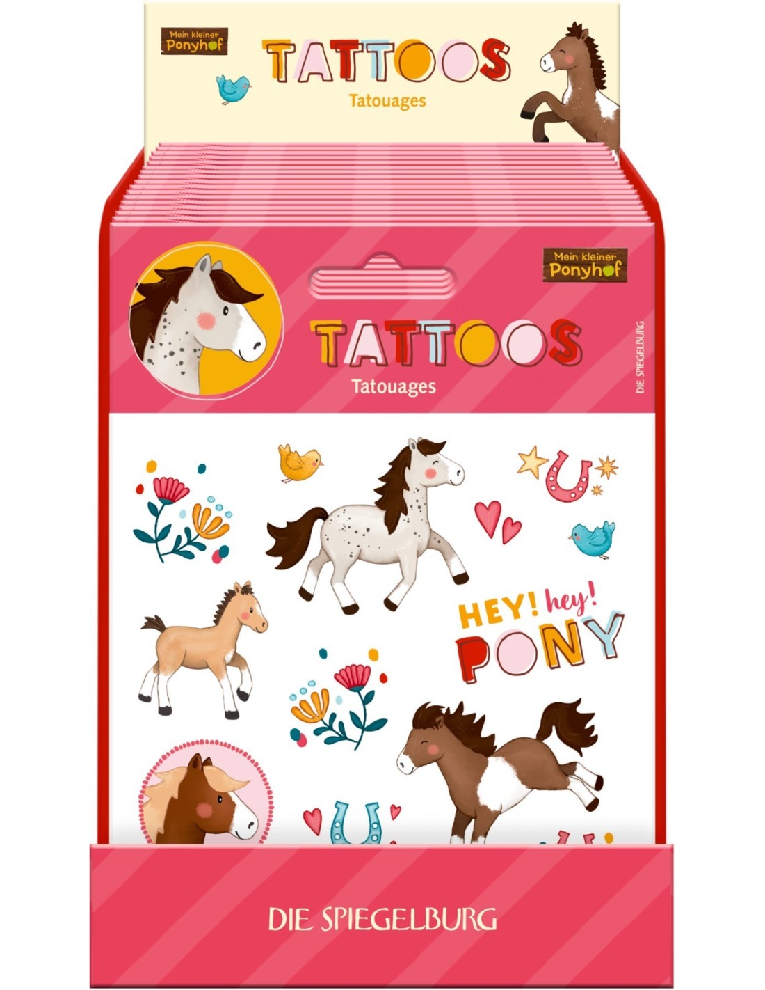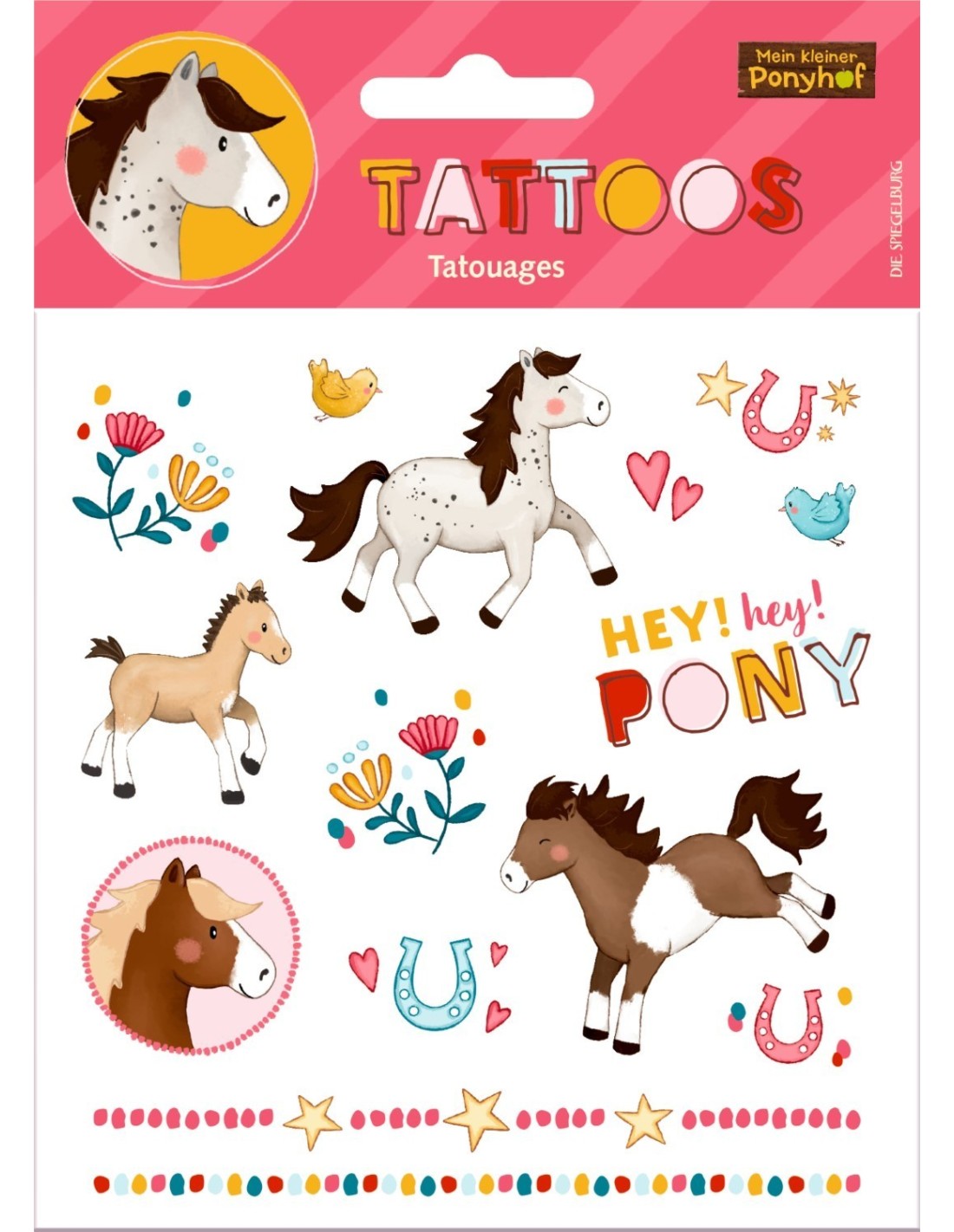 Stickers en TattoosMooie tatoeages voor kleine ponyfans. Huidvriendelijk, gemakkelijk in gebruik. Verwijderen met zeep.