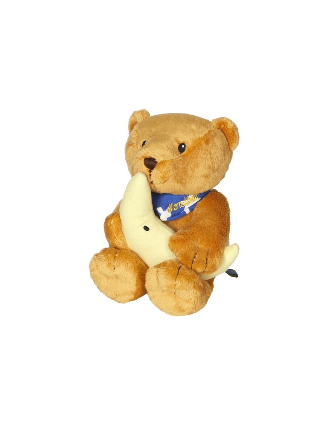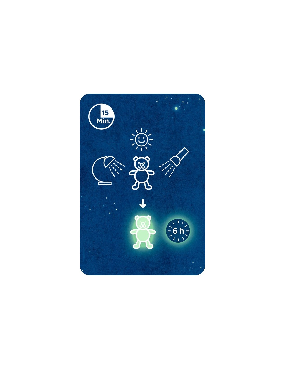 "Charge" the moon with daylight or artificial light and it will glow in the dark for up to 6 hours. Moon and bear are connected with magnets. In a beautiful gift box.