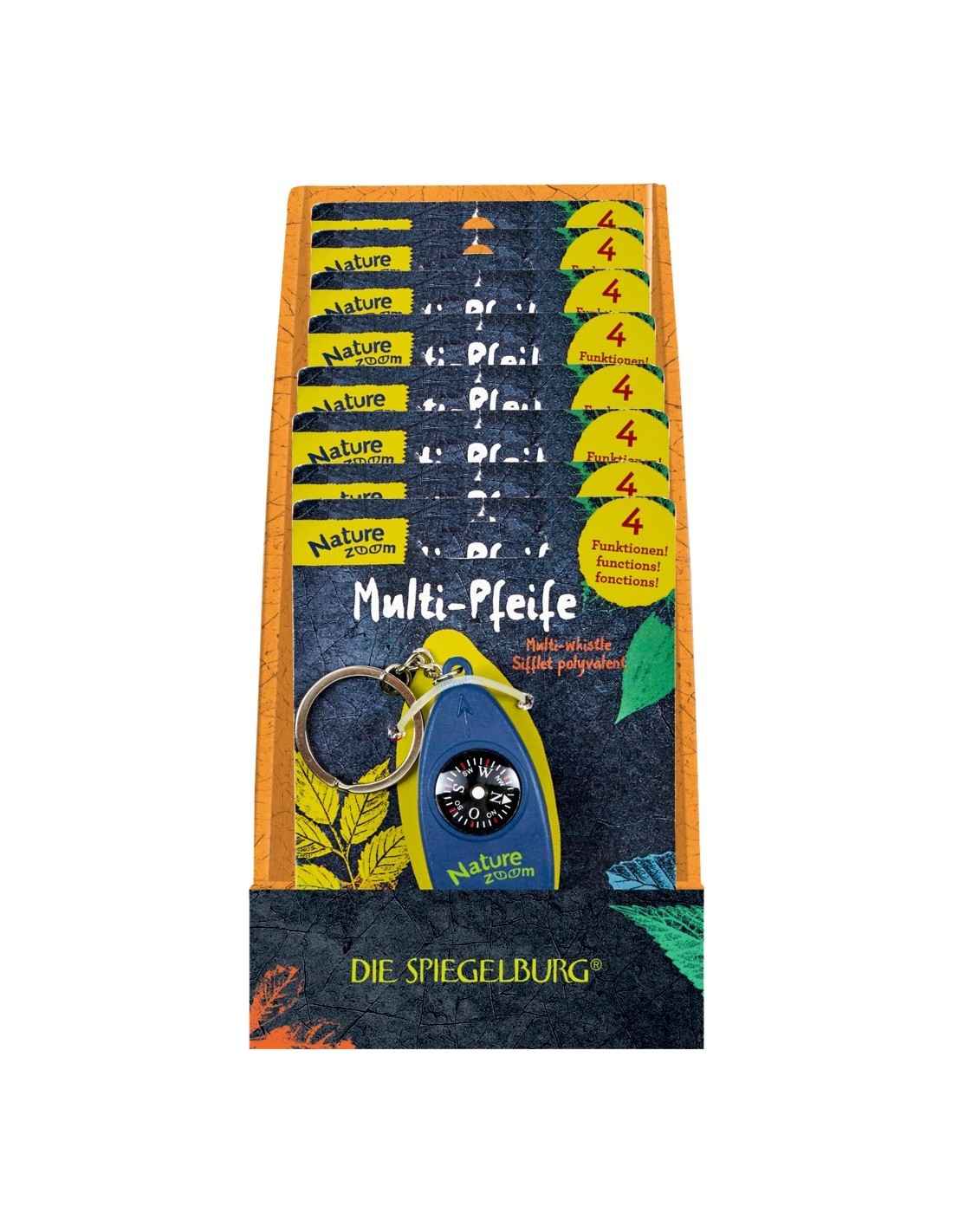 Nature Zoom Multi-Pfeife. Der kleine Begleiter für alle Fälle. Kompakt und dank des stabilen Schlüsselanhängers immer mit dabei. Mit vier Funktionen: Kompass, Thermometer, Lupe und Pfeife.