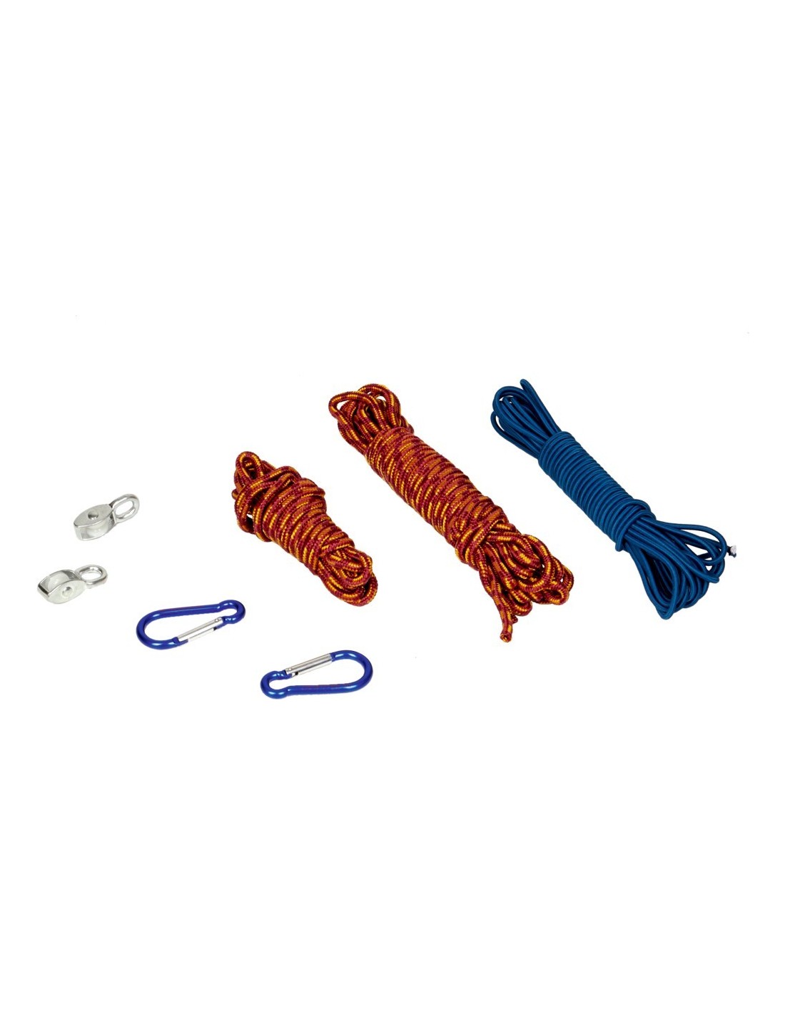 De perfecte multi-tool voor elke avonturier! Buitenopstelling met drie sterke touwen, een touw, twee grote karabijnen, twee poelies en een draagtas voor het opslaan van alle componenten. Een extra hoogtepunt is het kleine Leporello compleet met instructies (de belangrijkste knooppunt, onderdak, windscherm en aan te pakken), zodat iedereen ontdekkingsreizigers kan meteen aan de slag! Geweldig werk voor outdoor enthousiastelingen.