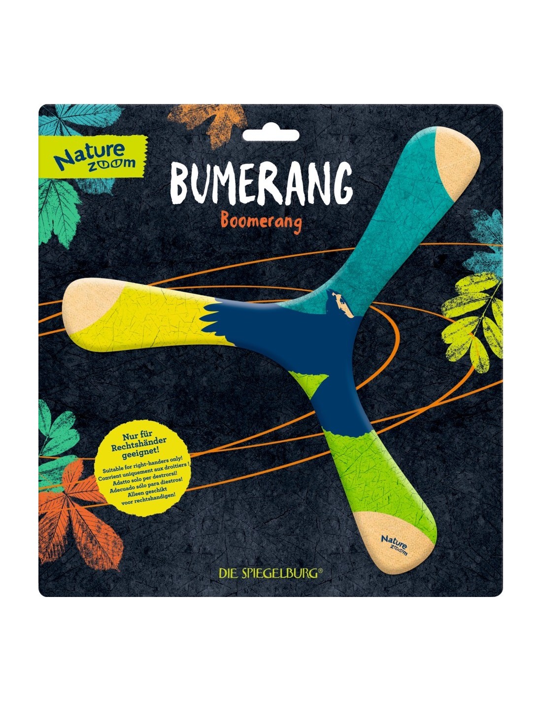 En, en uuuund: komt hij terug !!! Een groot gevoel van voldoening wanneer de boemerang gegooid perfecte eindigt weer in de handen! De helder gedrukte Nature Zoom boemerang is licht en wendbaar en geschikt is als drie-blade perfect voor toetreding. Alleen geschikt voor rechtshandigen.