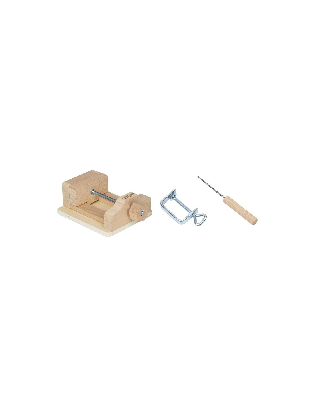 ToysThis vice is a creative multi talent: use it to clamp branches or pieces of wood (with max Ø 7cm), to spud chestnuts or to crack nuts. With drill, metal clamp and instruction.