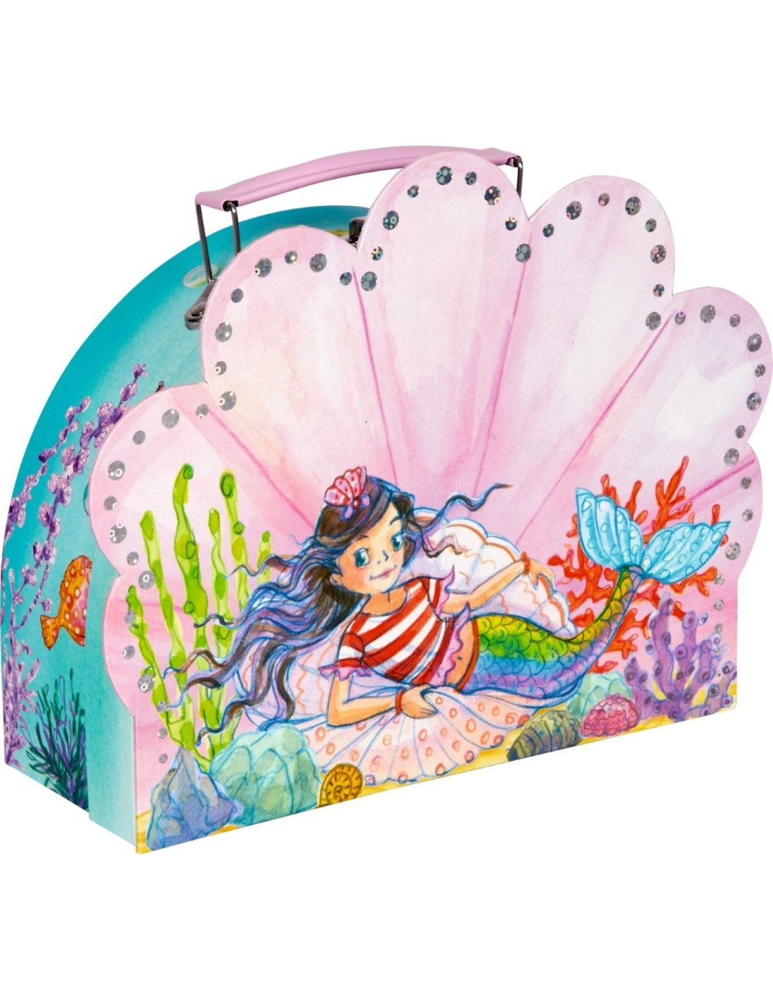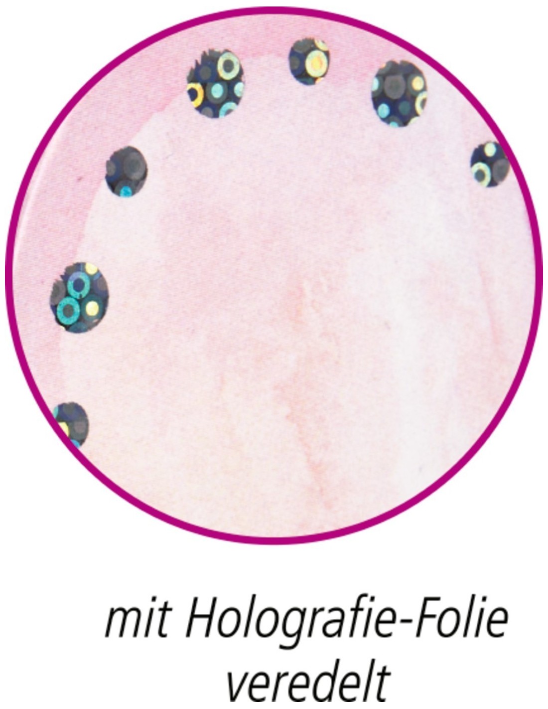 Gesteppt, mit Glitzerstoff, Applikation und Stickereien.Mit abnehmbarem Brustgurt.Außen- und Innenmaterial Polyester.ca. 22 x 18 x 10 cm
