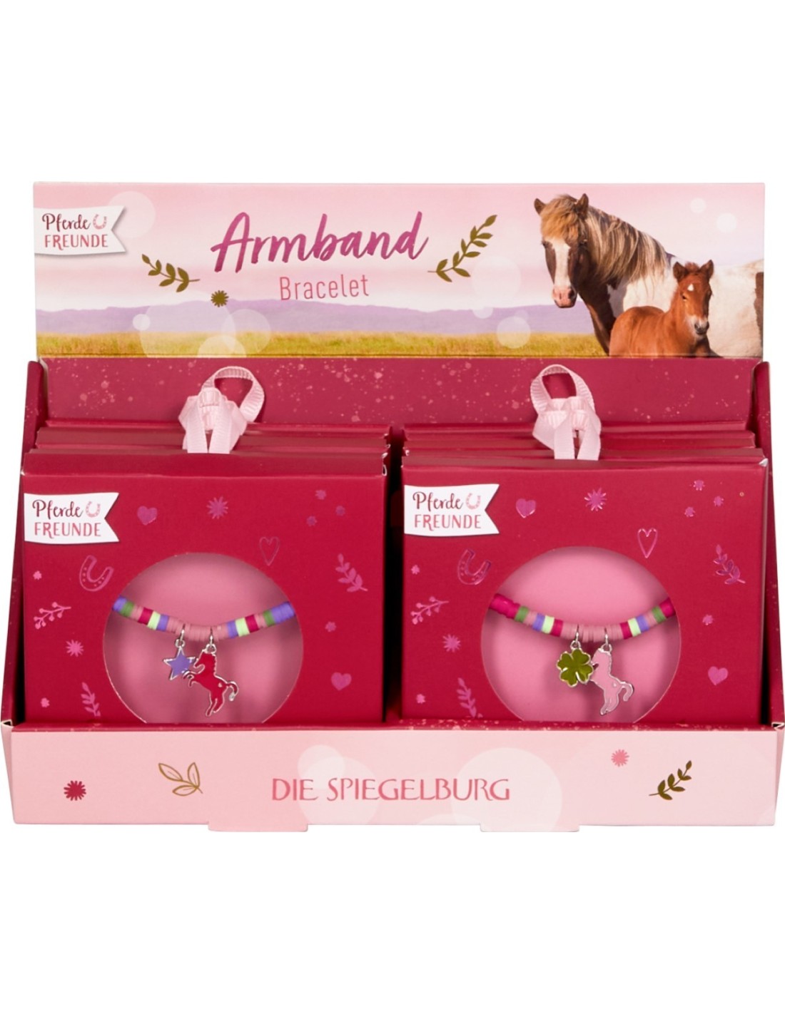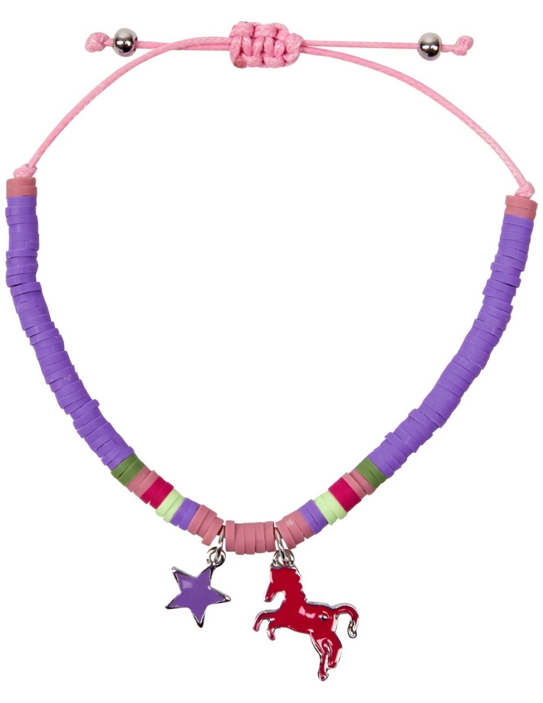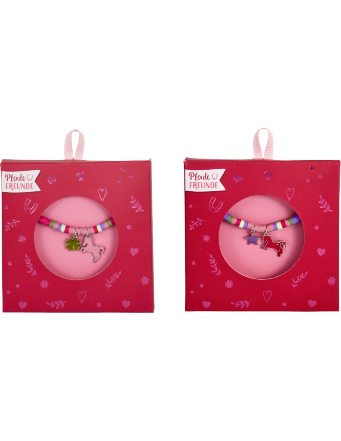 De in maat verstelbare armband met trendy, kleurrijke schijfkralen is verkrijgbaar in 2 designs. Het ideale accessoire voor echte paardenliefhebbers!