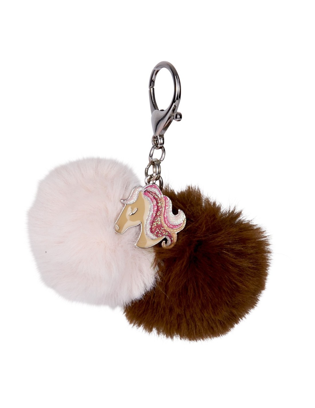 3 kleuren. Met karabijnhaak. Paarden sleutelhanger van email met glitterafwerkinggemaakt van pluche en metaalca. 10 cm in het display