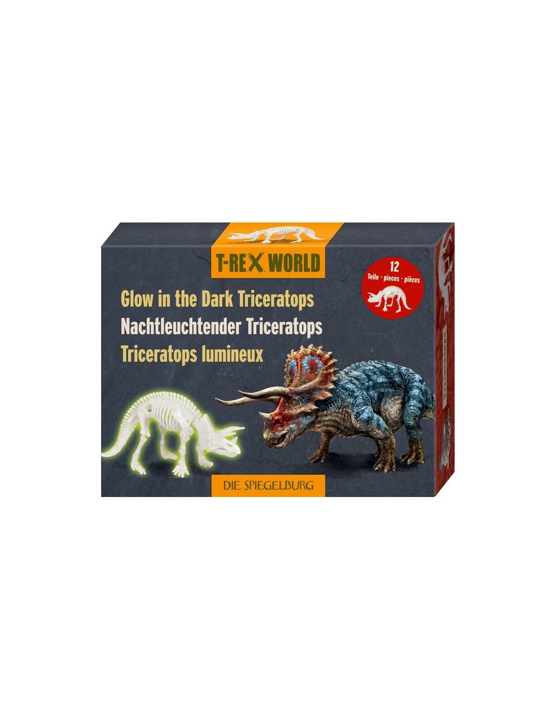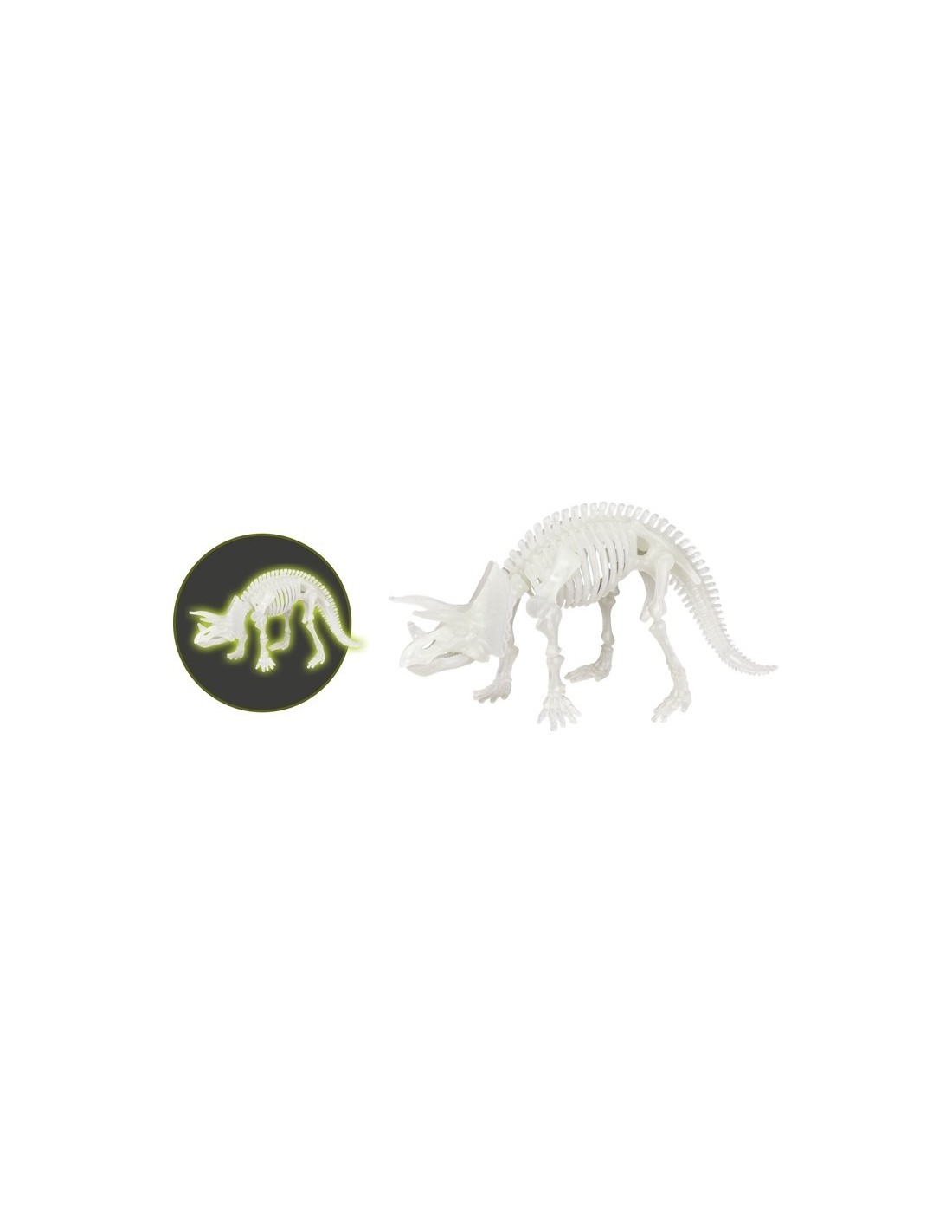 ToysExcavation set for hobby archaeologists and dinosour fans. There is a Triceratops skeleton hidden in the piece of rock that glows in the dark. The set also includes excavation equipment made of plastic (hammer, scoop and brush).