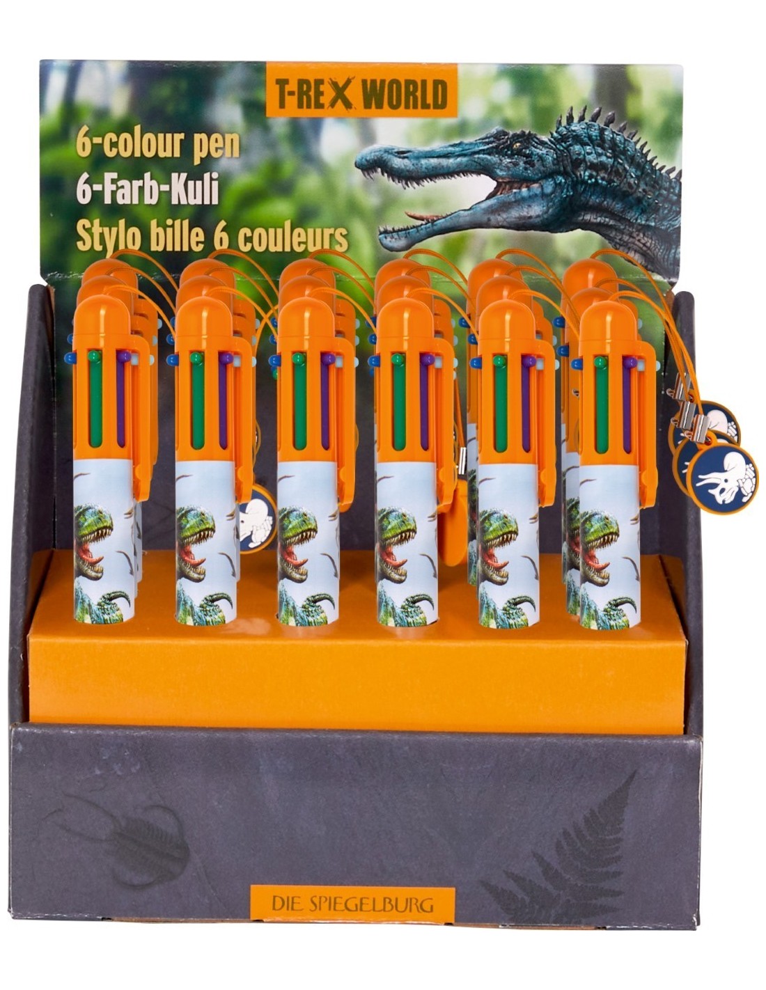 StationeryDino-sterke 6-kleurenpen met aanhanger voor alle T-Rex fans! Met snoeren in lichtblauw, oranje, rood, blauw, lichtgroen en paars.