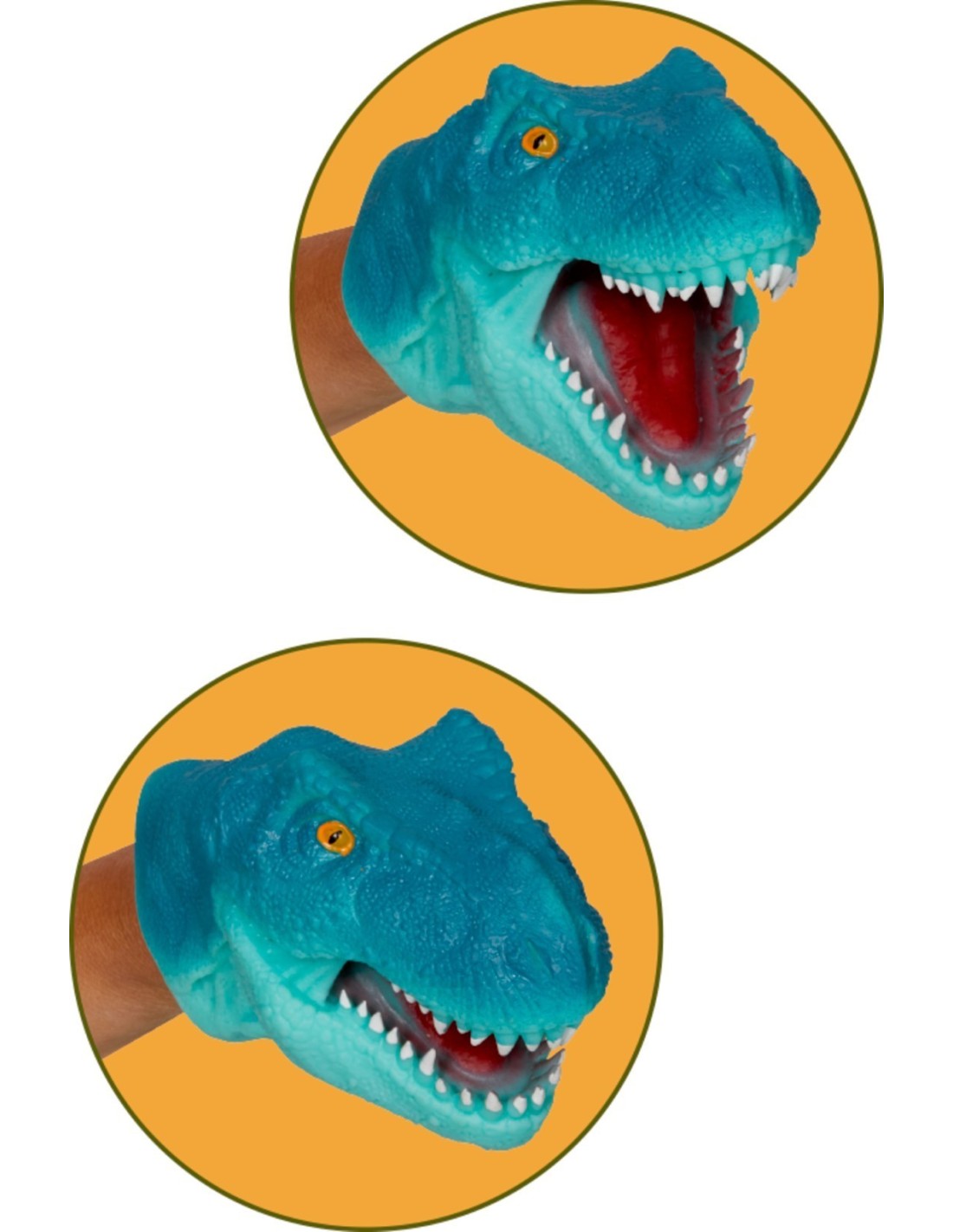 Realistische T-Rex handpop voor het beste dinosaurusplezier! Dubbele actie in de strijd met de aanvullende Triceratops-handpop.