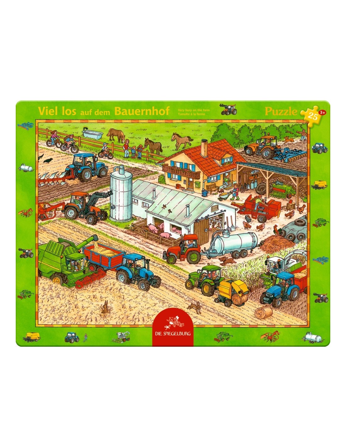 PuzzelsThere is a lot to discover on the farm, look at the animals: pigs, chicken and horses, but also tractors, harvester and other vehicles. 25 pieces of puzzle fun for children 4 years and older. The puzzle frame serves not only as help for the little puzzle fans, but is also a convenient pad. Doing puzzles supports the eye-hand coordination, fine motor skills and ability to concentrate.