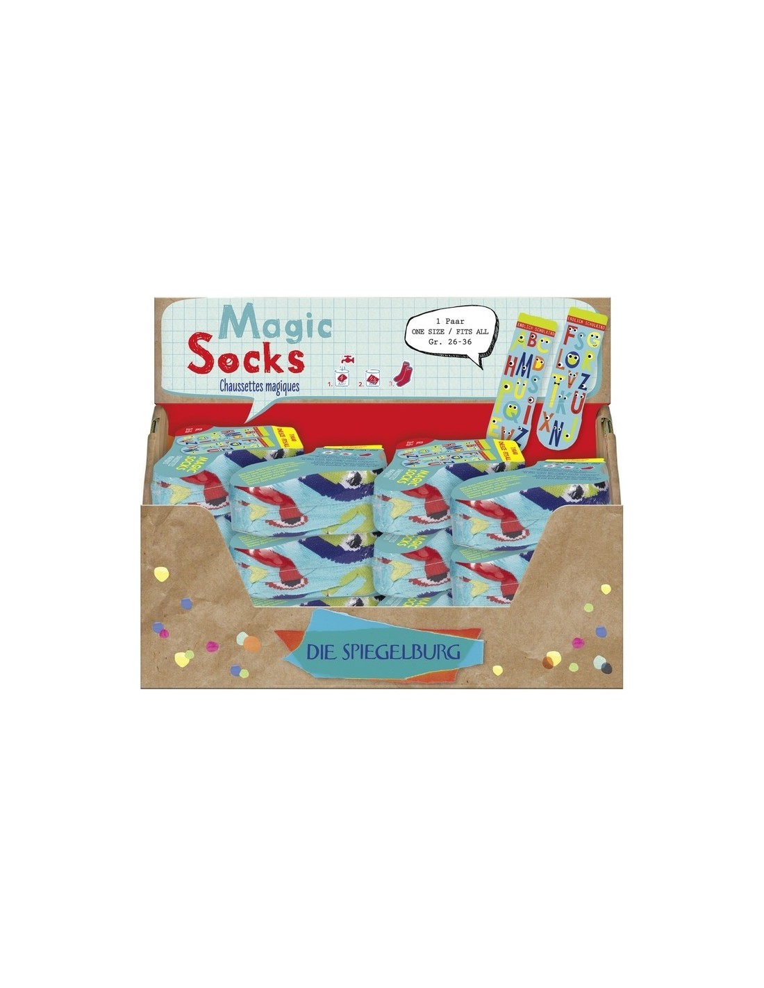 Shape pressed magic socks that unfold in water with letter design for school kids.