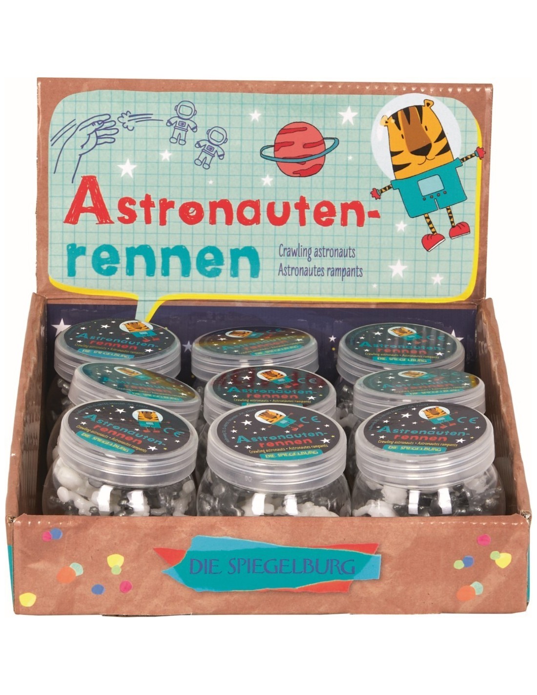 set of 18 astronauts in 2 different colours / Game idea: For a race, let astronauts of different colours crawl down a smooth surface. The colour that reaches the ground first wins!