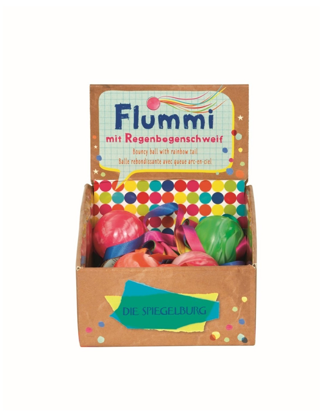 Flummi: Ø ca. 5 cm / Regenbogenband: ca. 40 x 1 cm